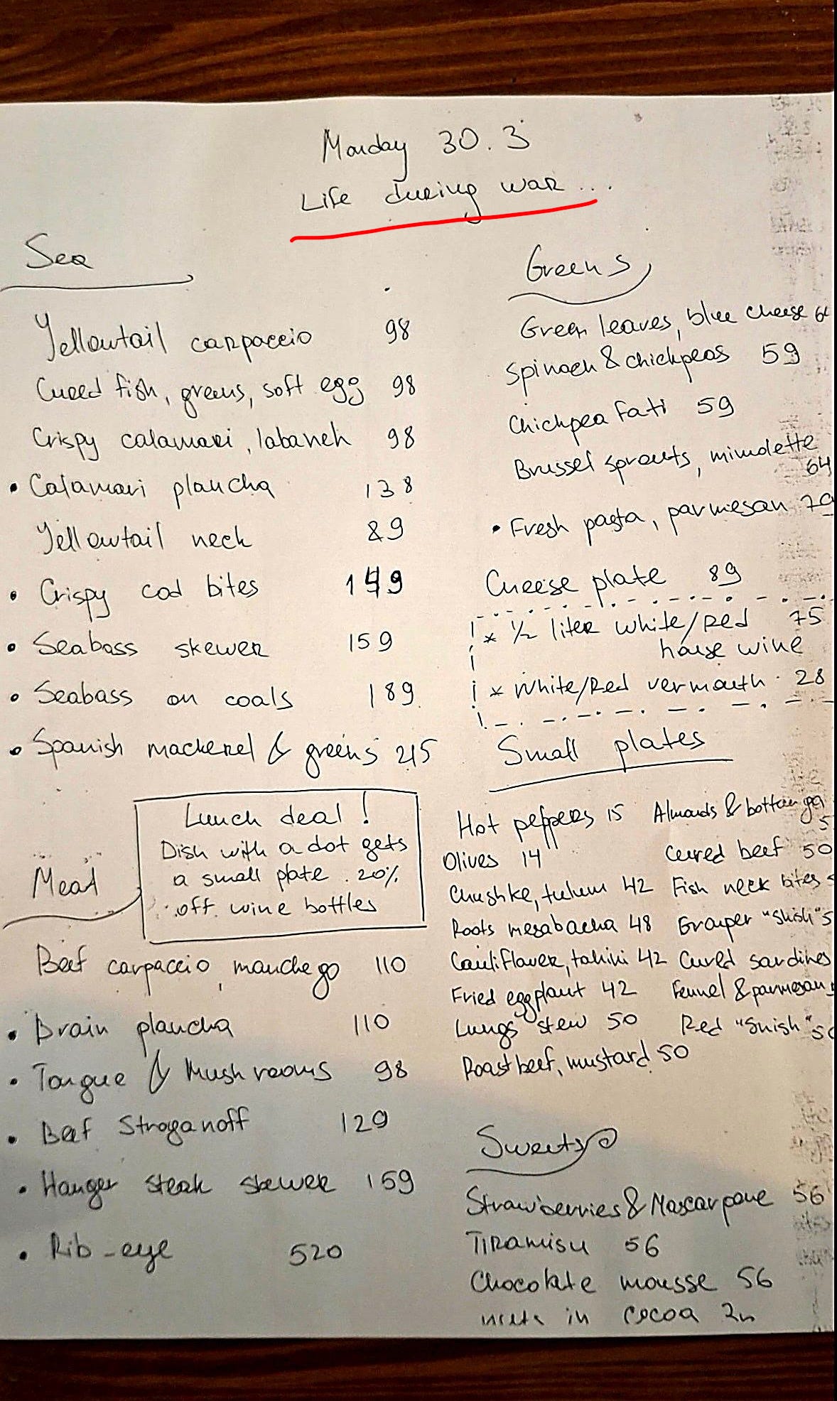 This month I’ve been living under rocket attacks. On my actual birthday, I was in the shelter at least four times. Between sirens, I had lunch with friends at our favourite restaurant — which was serving a “life during the war.”